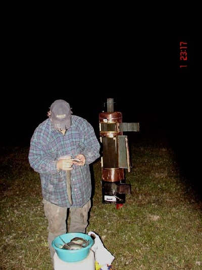Aber auch Stefan, hatte beiss laune, er Überraschte mit einem Räucherofen der Marke eigenbau und 5 eingelegten Aalen die wir direkt am Angelplatz räucherten.