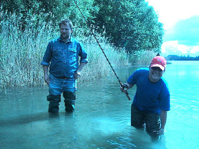 Trotz Regenschauer.. Günther und Sohn Micha kamen ebenfalls um ihre Ruten zu schwingen..